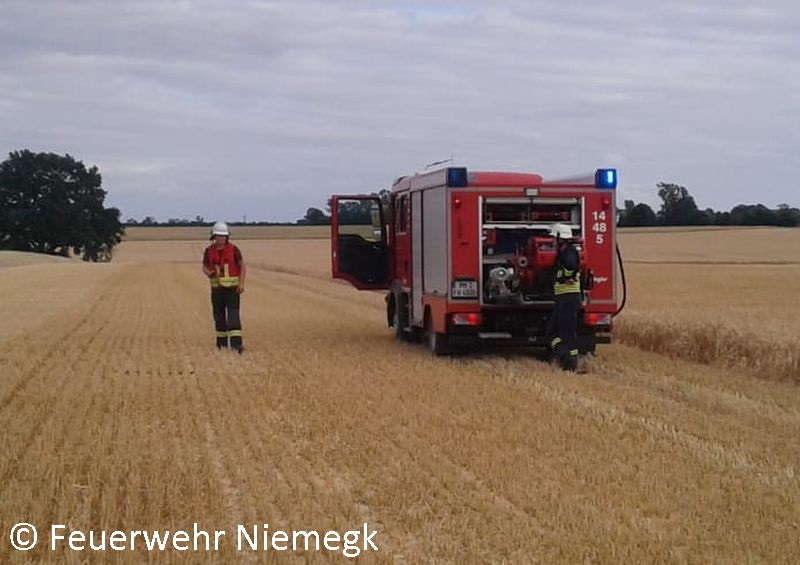 Vor Ort stellten die Einsatzkräfte einen Brand auf einer Fläche von 5 m² fest. Die Brandstelle befand sich auf dem bereits abgeernteten Teil des Feldes. Mittels Schnellangriff wurde das Feuer schnell gelöscht.