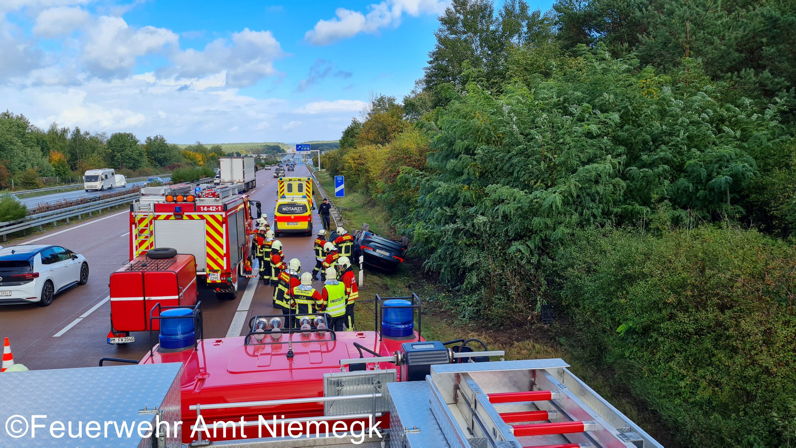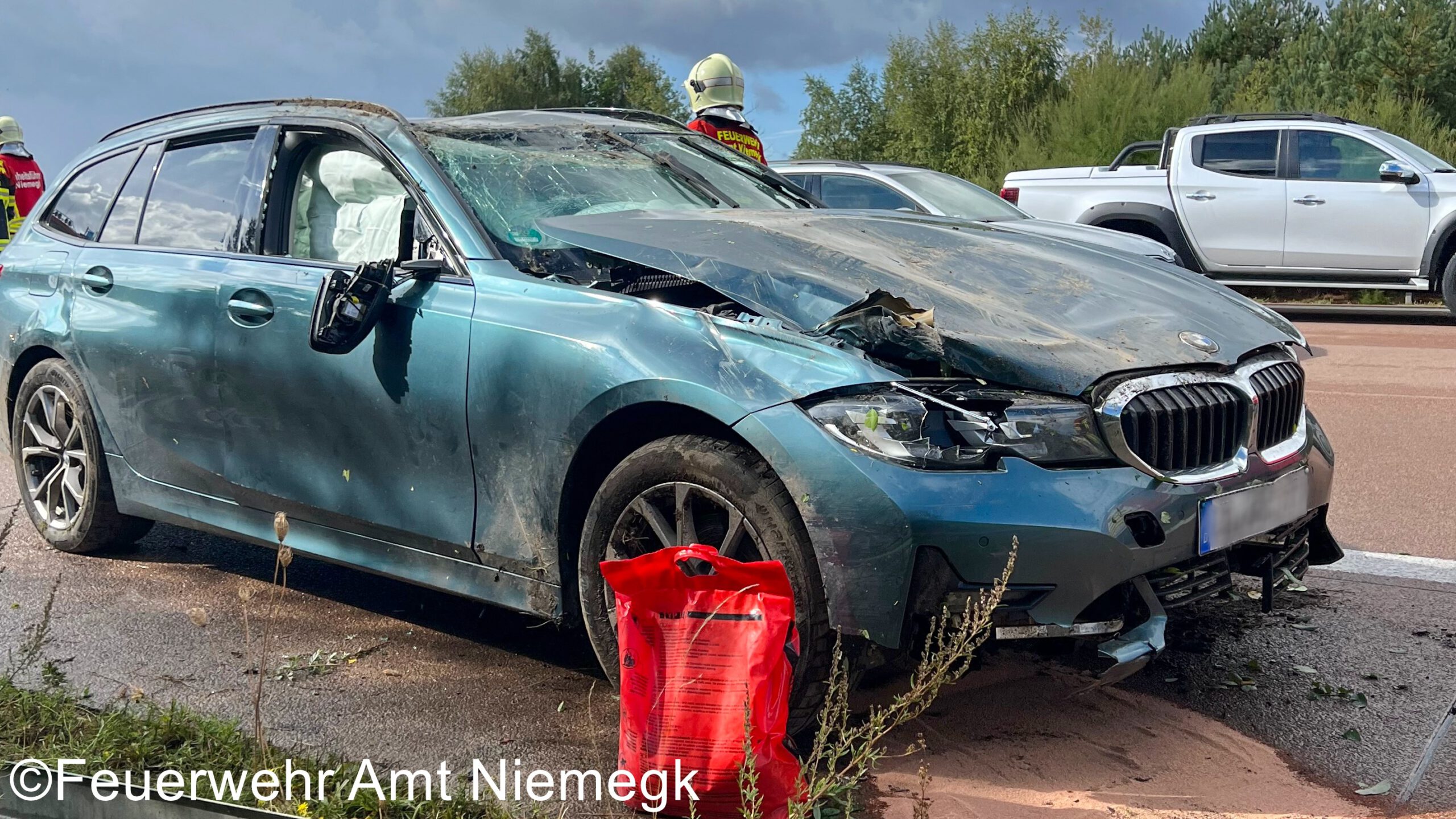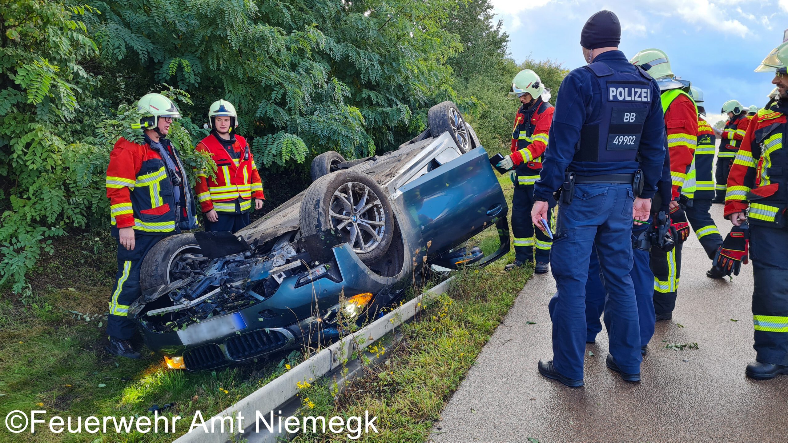 Aus ungeklärter Ursache verlor der Fahrer eines BMW die Kontrolle über das Fahrzeug. Der PKW überschlug sich und landete auf dem Dach auf dem Seitenstreifen. Die Einsatzkräfte sicherten die Unfallstelle, haben ausgelaufene Betriebsstoffe gebunden und das Fahrzeug aufgerichtet. Im Anschluss wurde die Einsatzstelle an die Polizei übergeben.