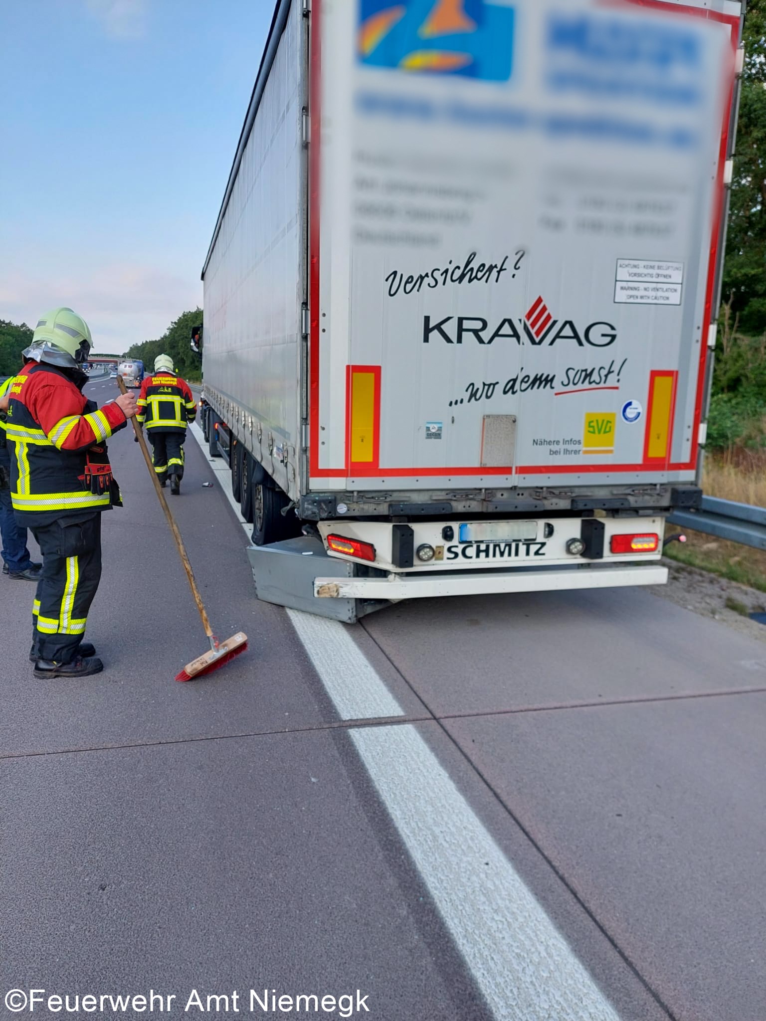 Aus ungeklärter Ursache kollidierten ein PKW und ein LKW. Die Einsatzkräfte sicherten die Unfallstelle, klemmten bei einem Fahrzeug die Batterie ab und haben die Fahrzeugteile von der Fahrbahn geräumt.