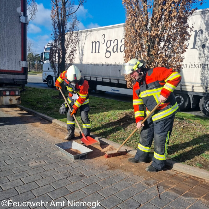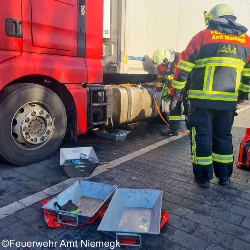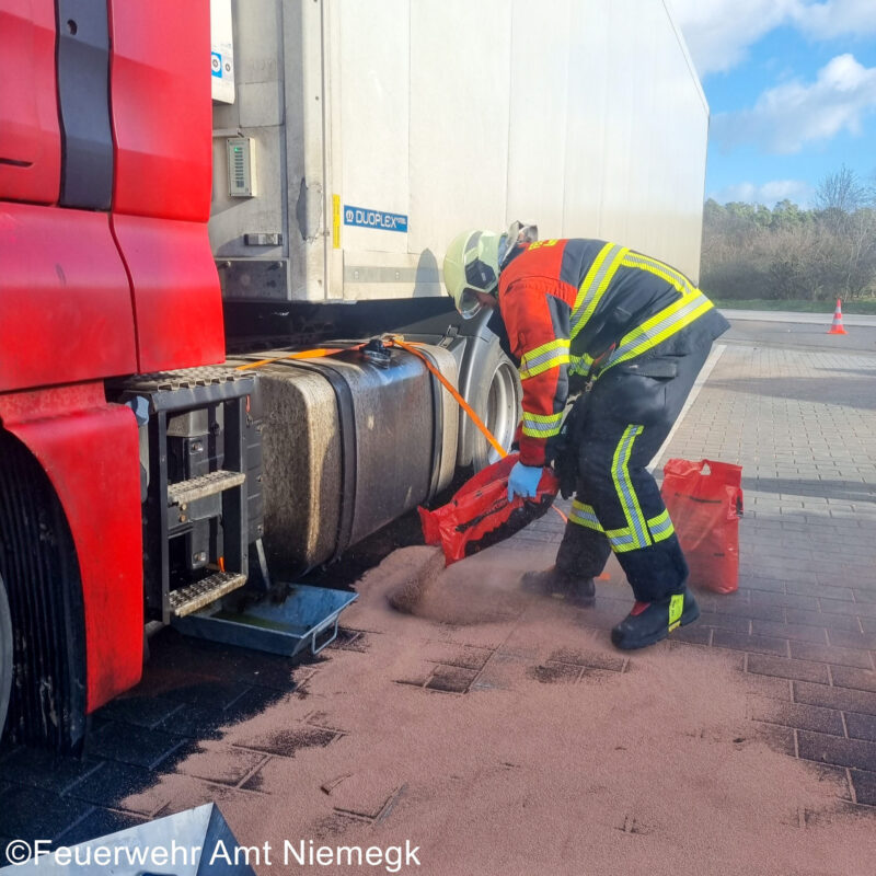 Durch die Regionalleitstelle wurden Kräfte der Feuerwehr zu einem LKW mit auslaufenden Betriebsstoffen gerufen. Vor Ort sicherten sie die Einsatzstelle und haben die Betriebsstoffe gebunden und ein weiteres Ausbreiten verhindert.