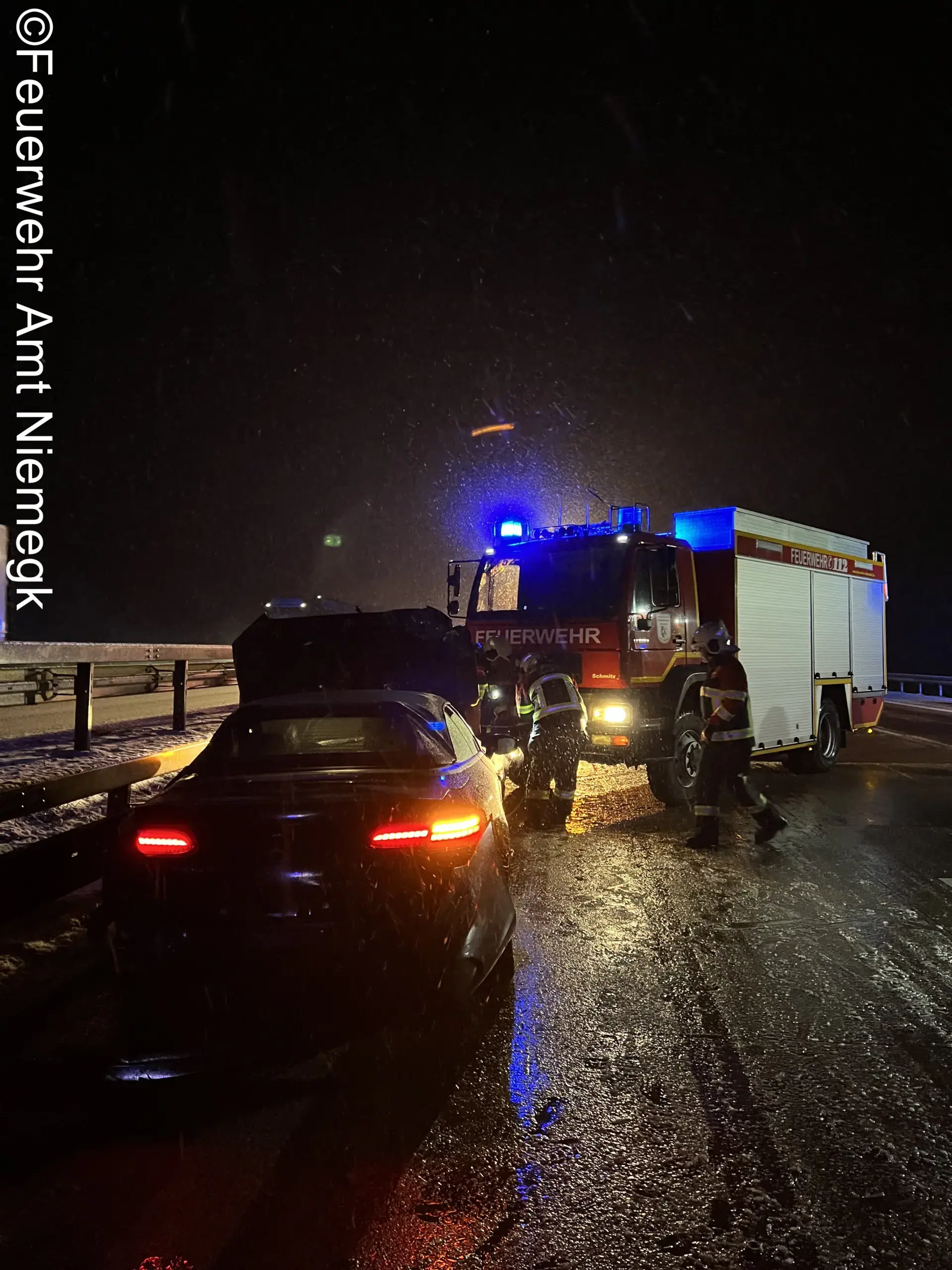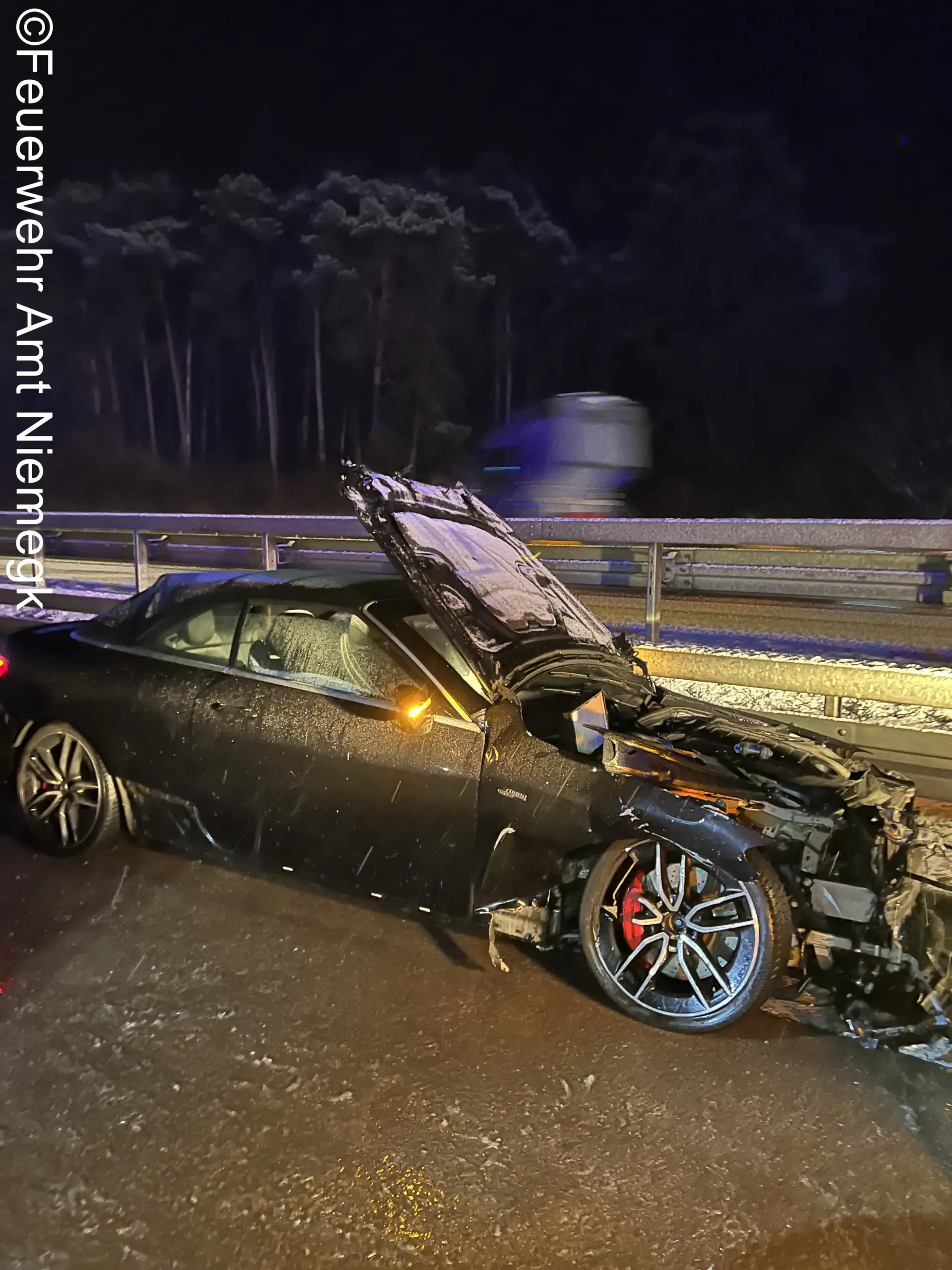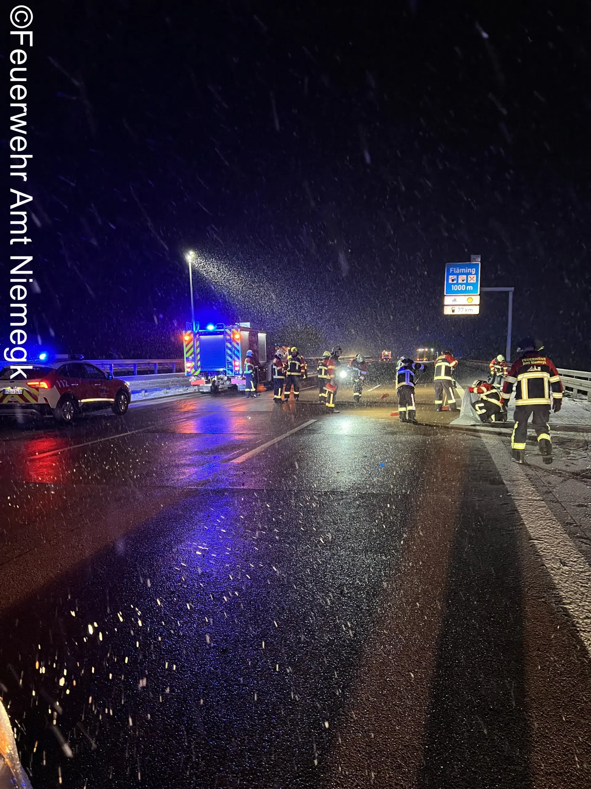 Aus bisher ungeklärter Ursache verlor der Fahrer eines Mercedes die Kontrolle über sein Fahrzeug und kollidierte mehrmals mit den Leitplanken. Die Einsatzkräfte sicherten die Einsatzstelle, leuchteten diese aus und beräumten die Fahrbahnen von Fahrzeugteilen.