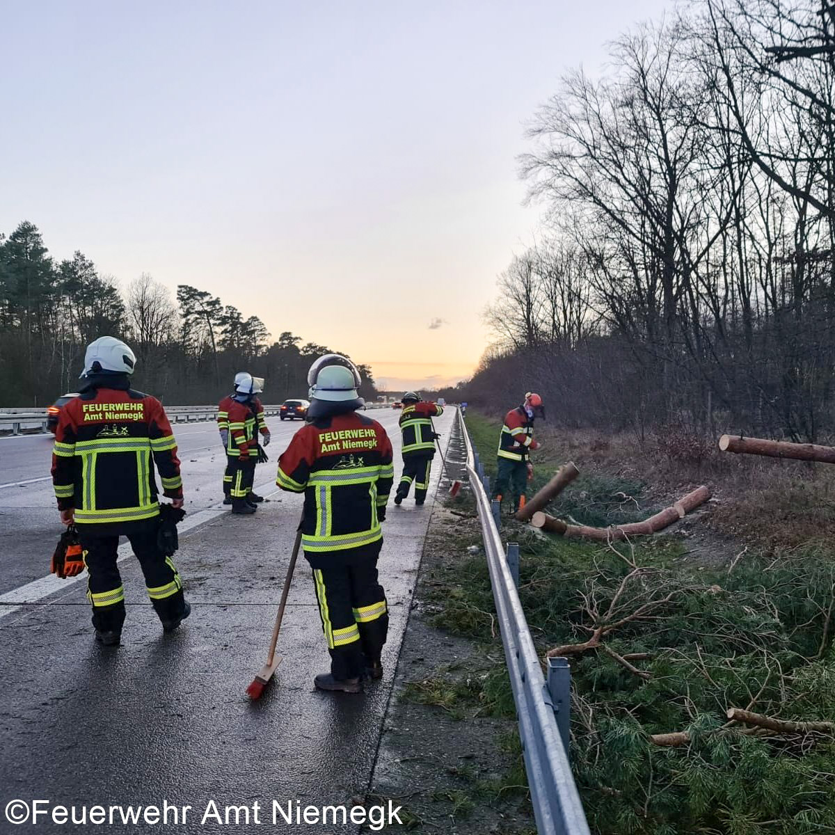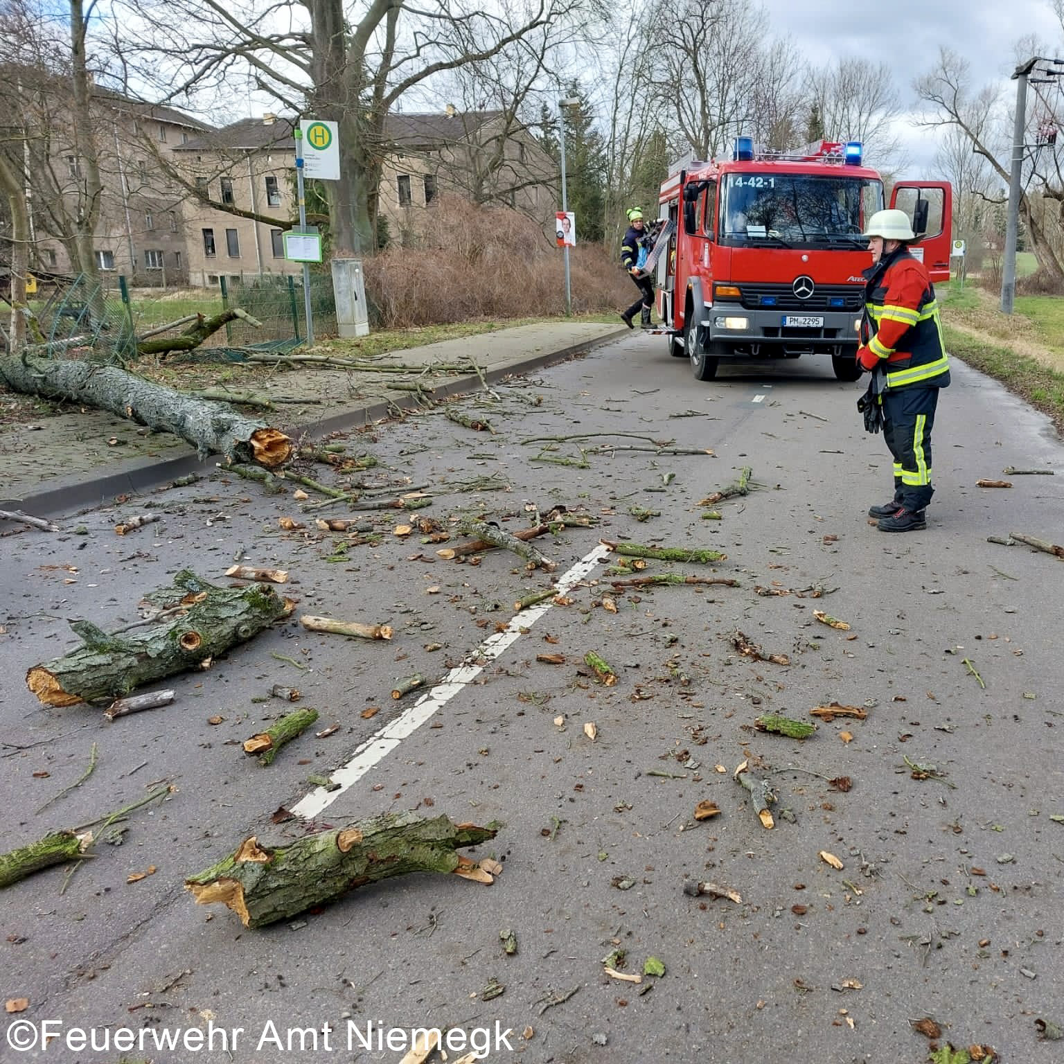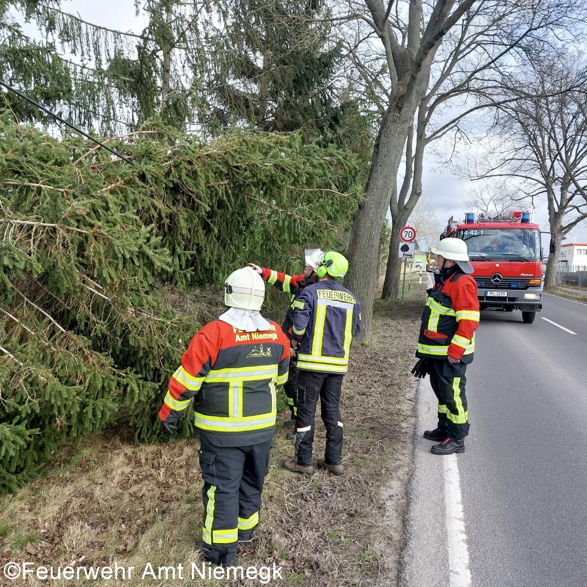Im Amtsgebiet kam es durch das Sturmtief Yelina zu zahlreichen Einsätzen. Insgesamt 8 Mal rückten die Einsatzkräfte zu umgestürzten Bäumen aus. Unter anderem waren die BAB 9, die B102 und die Bahngleise bei Treuenbrietzen betroffen. Vor Ort sicherten die Einsatzkräfte die Einsatzstellen und beräumten die betroffenen Stellen von Ästen und Bäumen.
