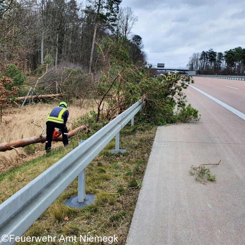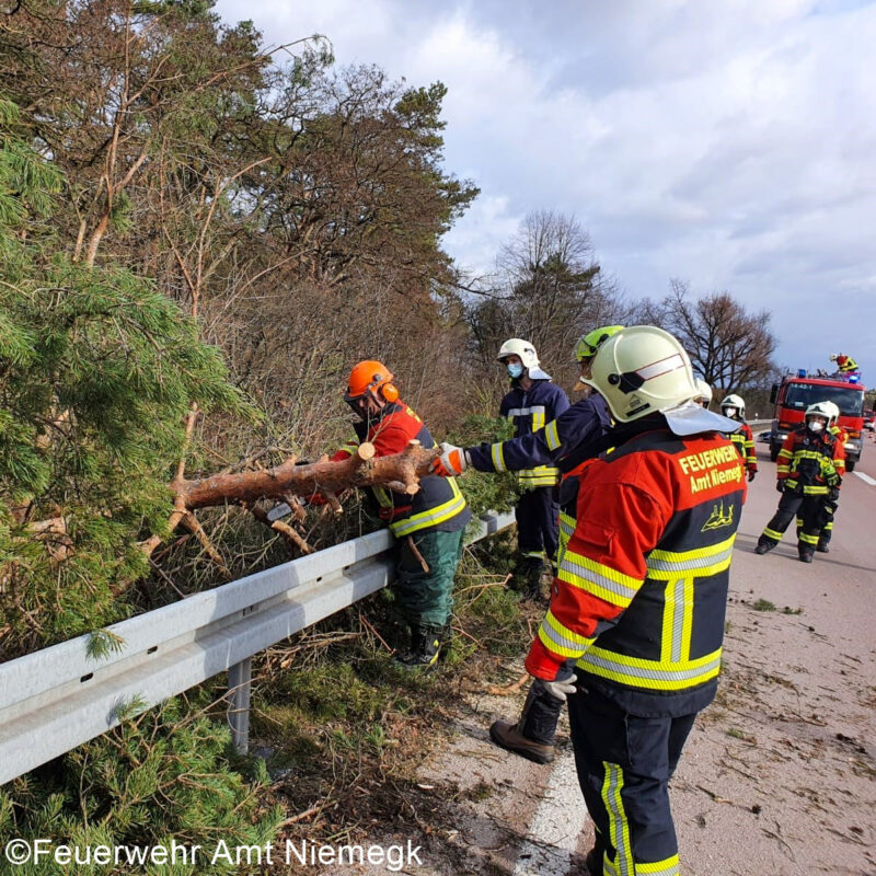 Ausgelöst durch das Orkantief Zeynep kam es zu insgesamt 3 Einsätzen. Dabei sind sowohl Bäume, als auch ein Telefonmast umgestürzt und blockierten Straßen. Die Einsatzkräfte sicherten vor Ort die Einsatzstellen und beräumten unter Einsatz der Motorkettensäge die betroffenen Straßen.