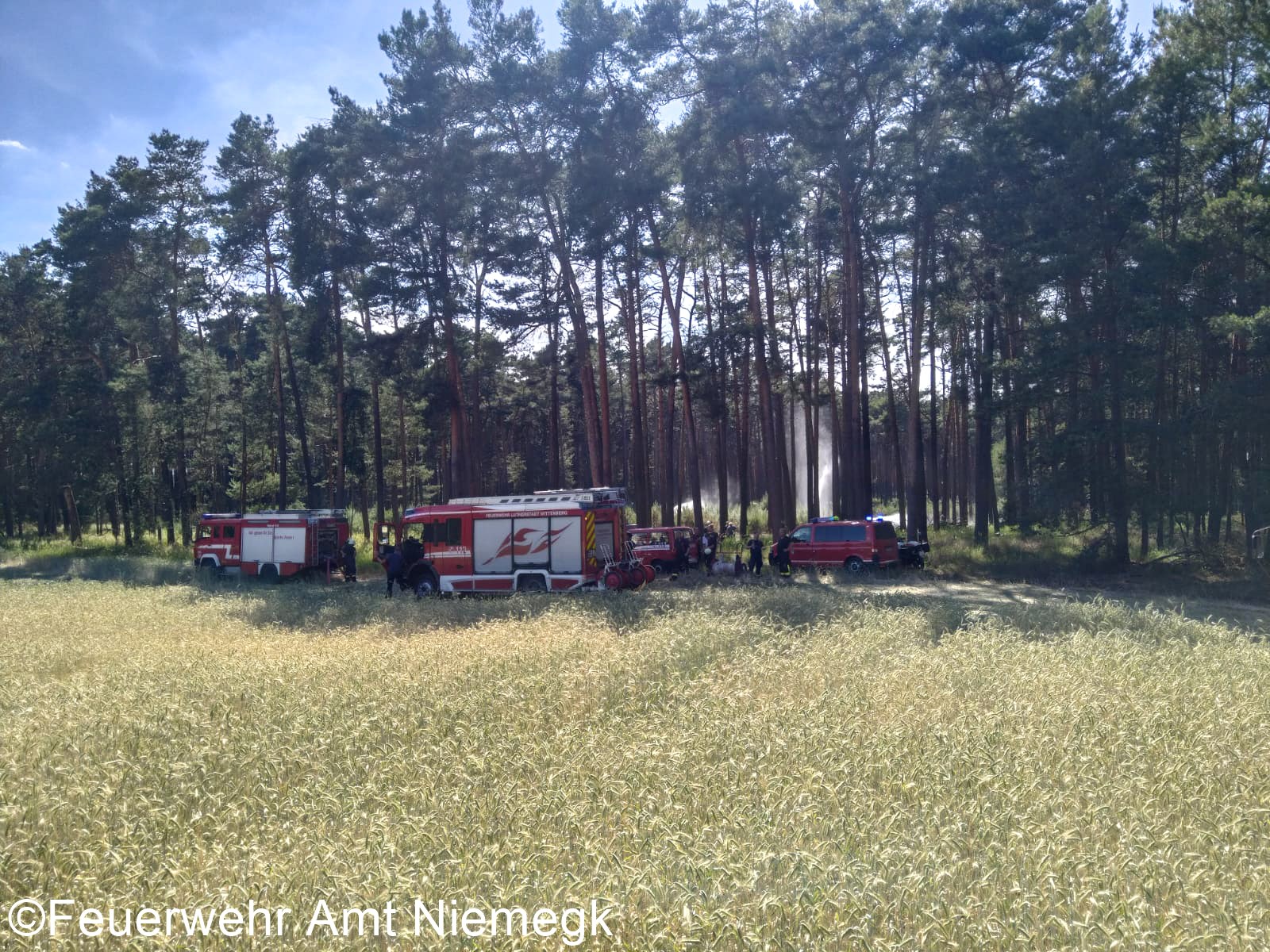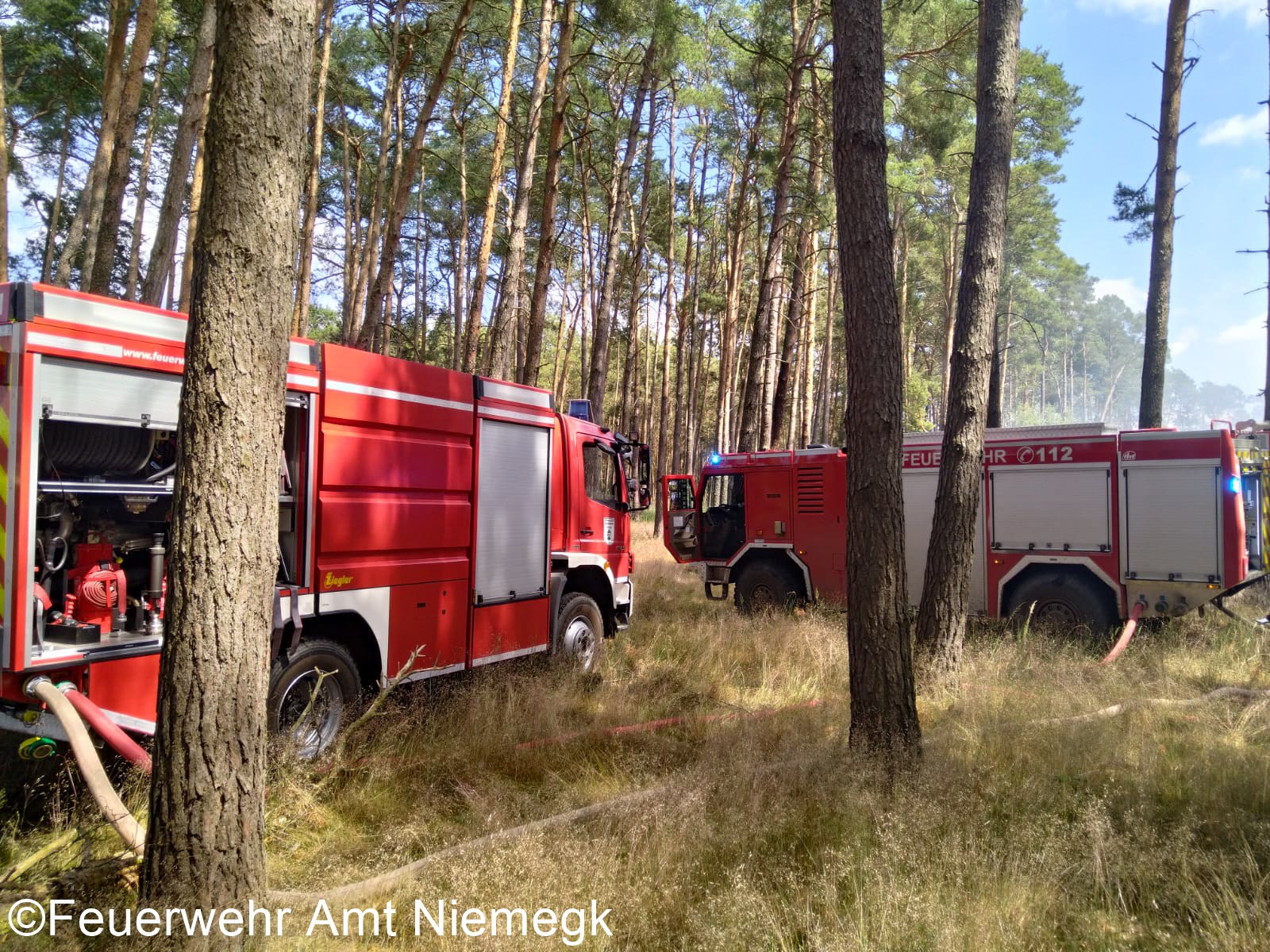Aus ungeklärter Ursache begann ein Waldstück zwischen Marzahna und Kropstädt zu brennen. Die angerückten Einsatzkräfte aus Niemegk versorgten die anderen Löschfahrzeuge im Pendelverkehr mit Löschwasser.