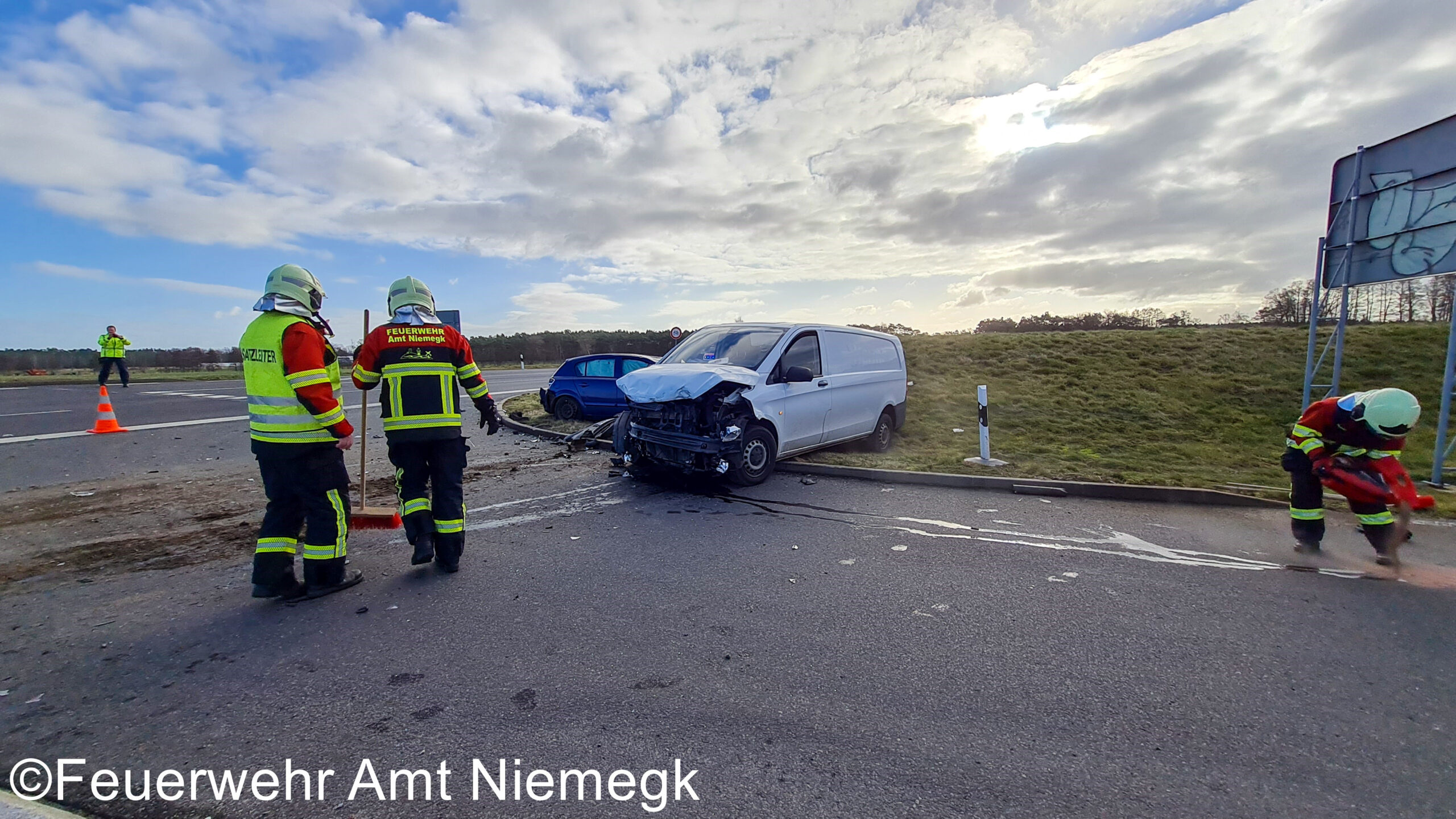 Aus ungeklärter Ursache kollidierten zwei PKW. Die alarmierten Einsatzkräfte sicherten die Unfallstelle und haben ausgelaufene Betriebsstoffe gebunden. Bei dem Unfall wurde eine Person verletzt. Diese wurde durch den Rettungsdienst betreut und in ein umliegendes Krankenhaus verbracht.