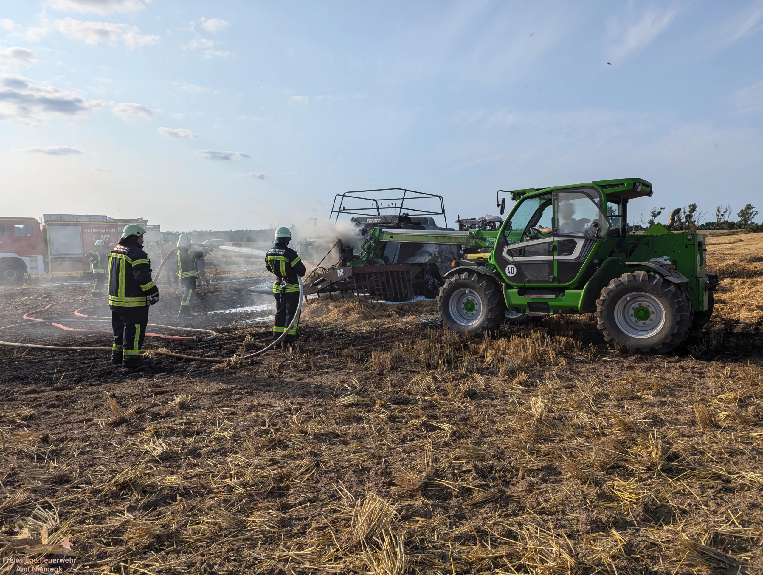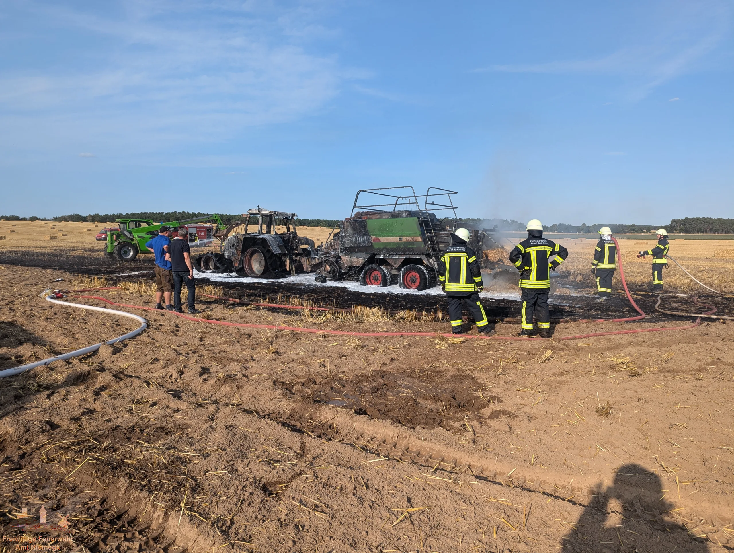 Wir wurden zu einem brennenden Traktor im Amtsgebiet Bad Belzig nachalarmiert. Ein Traktor und sein Arbeitsgerät gerieten aus bislang ungeklärter Ursache in Brand. Wir stellten im Pendelverkehr eine Wasserversorgung für andere Tanklöschfahrzeuge her.