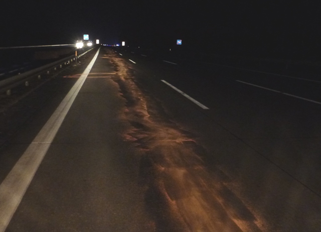 Die angerückte Feuerwehr übernahm die Sicherung der Einstatzstelle und das Abbinden der Ölspur. Für die Dauer der Reinigungs- und Bergungsarbeiten sowie die Unfallaufnahme wurde die Autobahn zweitweise voll gesperrt.